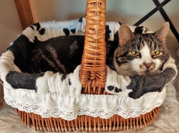 Lynx hade placerat sig själv så fint i en korg. Jag har lärt mig att se skillnad på Lynx och hans bror Räven nu. Men de är väldigt lika.