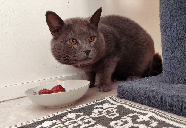 Det här är Måns och honom måste man visa respekt. Jag tänkte mig inte för en gång förra veckan och min hand hamnade reflexmässigt ovanpå hans huvud. Som tur var fräste han bara argt och drog sig undan. Jag visste ju att han var skygg men tankarna var någon annanstans. När man kommer in till Måns så fräser han argt men om man placerar ett fat med bollar av vom framför honom så kan han acceptera att man kommer in och fixar hos honom. Jag har inga tvivel om att Måns också kommer bli en trygg och tillitsfull kisse så småningom.