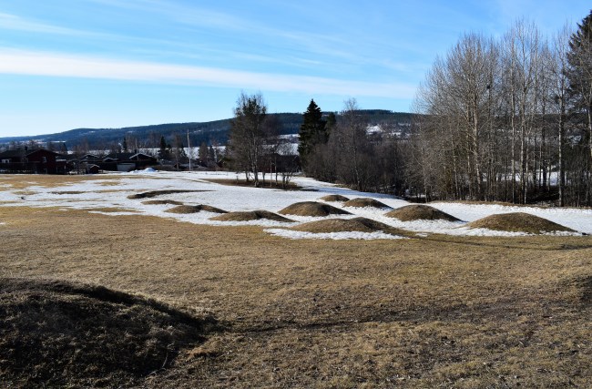 Jag slår ihop tre promenader och låter dem bli ett inlägg. De här små kullarna ligger alldeles vid Vallaskolan och där har barnen mycket kul för sig. Det hoppas med skidor på vintern och cyklar på sommaren. Hade jag inte sett allt de gör och inte lagt märke till de spår som blir av aktiviteterna så hade jag kanske trott att det här var ett gravfält. Men skolan hade nog inte uppmuntrat till ett så respektlöst användande av gravar så den teorin föll innan den ens slog rot.