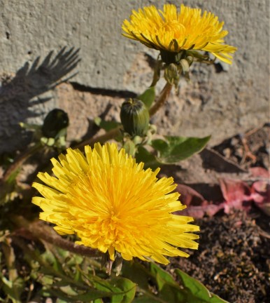Maskrosor kanske inte är det vårtecken som visas upp mest men eftersom de kommer väldigt tidigt just vid den här husväggen så får de vara med, precis som förra våren.