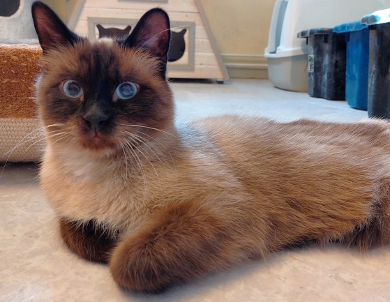 Den här kissen och hennes bror är bland de keligaste katterna på katthemmet just nu. De är såå vackra med sina blå ögon och fina färger. Båda två kommer direkt när man går in i det rum de befinner sig i och då kan man inte göra annat än att sätta sig ner en stund och bara ta emot allt gos.