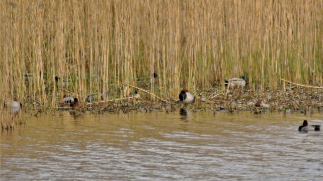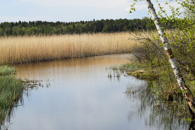 Där inne i vassen ligger många fåglar på ägg just nu och snart simmar nog massor av söta små ungar omkring i sjön. Det ser ut att vara brunänder och gräsänder som samsas om den här delen av sjön.