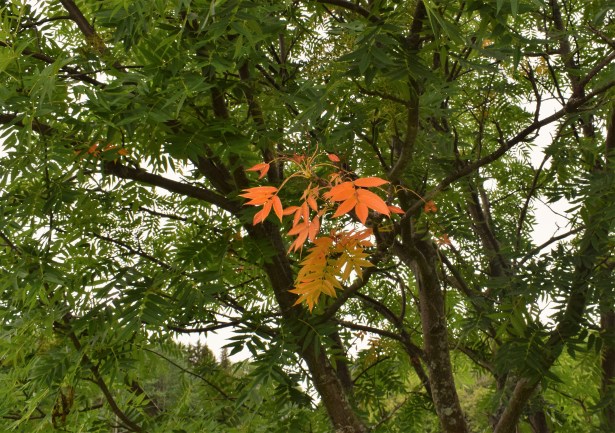 I fredags gick jag en promenad åt ett annat håll och gick förbi den rönn som får de mest fantastiska färger på hösten. Men jag hade inte förväntat mig att redan se de första tecknen.