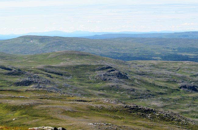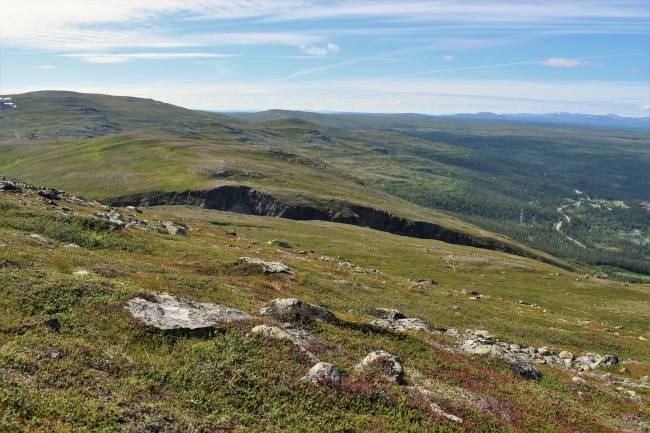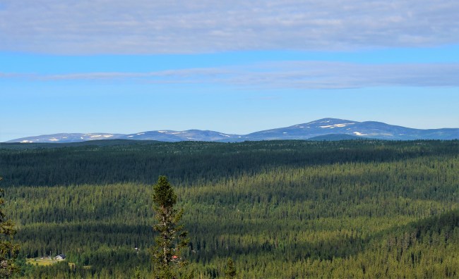 En bit upp dyker andra fjäll upp långt borta. De syns inte bakom all skog när man är nere i dalen men ju längre upp man kommer desto mer får man se av omgivande fjäll.