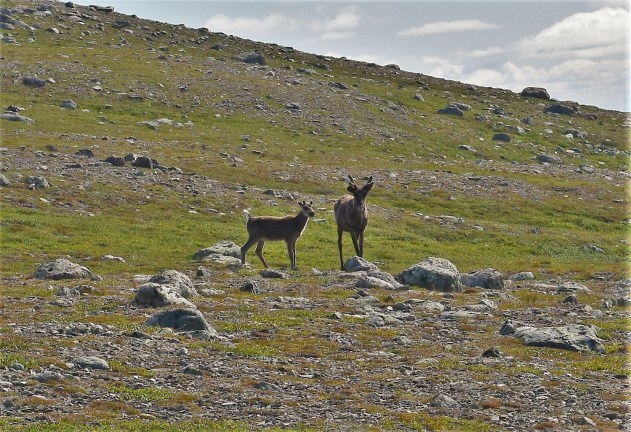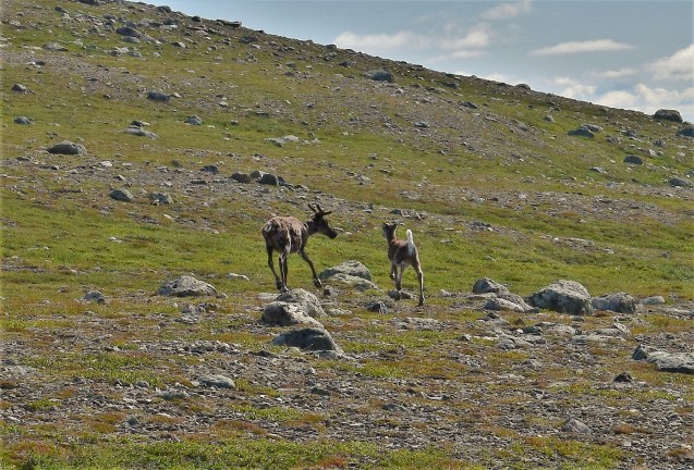 Nu var det inte långt kvar. Där uppe dök det upp ännu en renkalv med sin mamma.