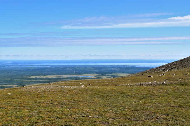 Naturen är karg men så vansinnigt vacker. Jag kan nästan känna hur luften känns. Och jag njuter av utsikten, den milsvida. Och så den lilla renkalven. Vilken tur att det gick bra … lilla vännen. Så bra att du unnade dig en chokladboll också.