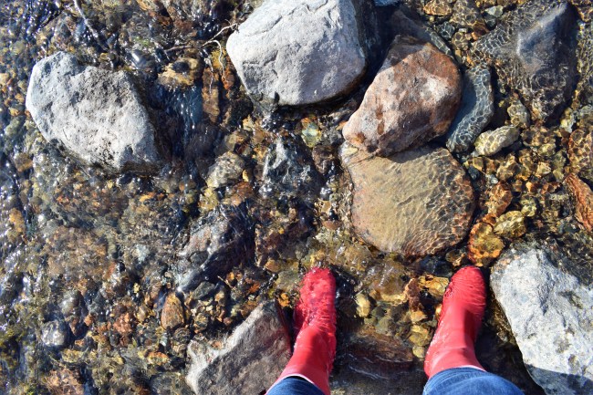 Tack för grattiset 😀 Jag har mest naturfärgade och blåa kläder så att mina stövlar är röda är egengligen lite underligt. Jag vet inte riktigt vad som fick mig att välja dem. Kanske var jag för en kort stund lite sugen på något annorlunda. Det var fint att sitta där vid forsen och mumsa på mackor och chokladboll.