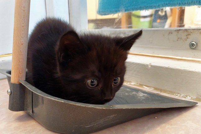 Det sägs ibland att man är antingen katt- eller hundmänniska men jag är helt klart både katt- och hundmänniska. Kanske lite mer hundmänniska men katter är underbara varelser också. Vem kan t ex motstå en liten kattunge som förväntansfullt placerar sig i sopskyffeln och väntar på att den ska lyfta? På katthemmet kan man gå in i olika rum eller bås där det finns kattungar och oberoende av varandra har de kommit på denna roliga lek. Kanske är det någon volontär eller ansvarig som går in för att lära dem detta men när jag är där behöver jag inte visa dem hur kul det är. Det vet de flesta av dem ändå. Iband får sopskyffeln lyfta med två små kissekatter samtidigt och kunde de skratta så skulle de nog göra det. Naturligtvis fick den här sötplutten en liten åktur.