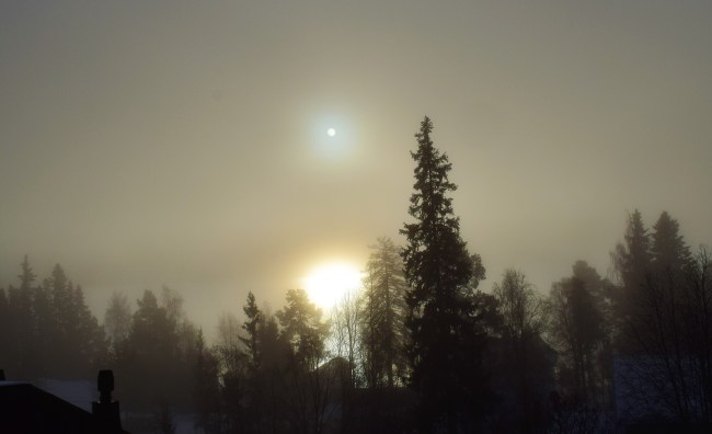 Ni vet att jag gillar dimma och från min balkong såg det ut så här med bara några få timmars mellanrum.