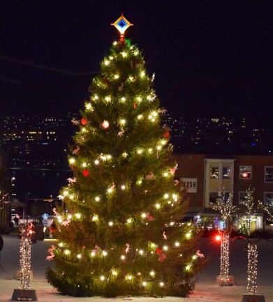 Granen på Stortorget har i år samiskt tema. Jag instämmer med Anna-Lena om att den inte är särskilt vacker på nära håll men på lite avstånd är den ganska fin.