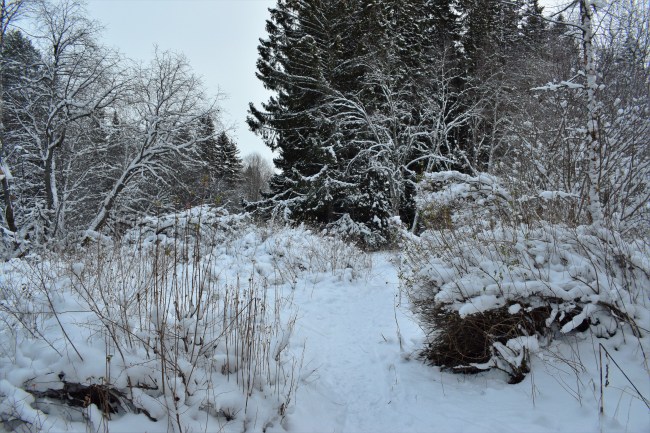 På eftermiddagen gick jag iväg på dagens promenad. Ca -15 grader och ganska gråmulet men en del sprickor i det grå gjorde min promenad skön. Med täckbyxor, varm halsduk upp över hakan och både mössa och luva var jag alldeles lagom varm i början men alldeles för varm när jag kom hem. Jag tror att jag har blivit varmare med åldern för jag kan inte minnas att jag inte behövde så mycket kläder när jag var yngre. Vantarna däremot har jag alltid behövt ta av mig efter ett tag under kalla promenader. Det spelar ingen roll om det är -20 grader. Mina händer måste få luft efter ett tag. Det är jag glad för. Att alltid frysa om händerna är inte särskilt kul och det är lättare att ta av sig vantarna än att inte kunna få tillräckligt mycket värme.