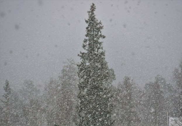 Tycker att det mer såg ut som en en än en gran faktiskt. Nu har det slutat snöa och med värkande kropp och stelfrusna händer efter att skottat i tre timmar så är jag glad för det men mindre glad för att kallhålet Fisksjön har 26 grader kallt och det verkar inte bli annat fast det är molnigt. Trots lager med kläder och att jag eldar både i spis och kamin fryser jag om fötterna så in i norden. Det är kalla golv i gamla hus utan källarvåning. Jag fryser väldigt om händerna och ska man bära ved och skotta kan man inte ha tumvantar för det blir för klumpigt så det är bara att frysa och svära och önska att det blev någon enstaka dag utan blåst kyla och snö.
