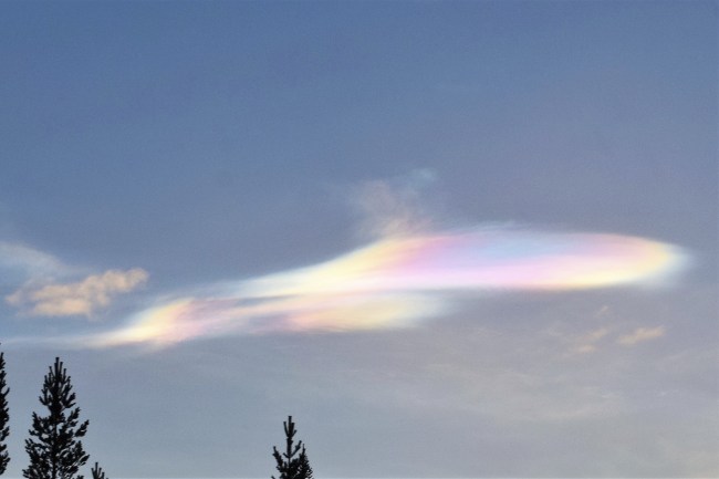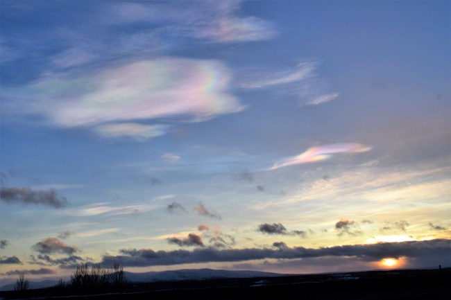 Resan hit gav oss en bonus i form av pärlemormoln. Vi hade tur som både hann se dem och stanna för att fota för de försvann ganska snart i tjocka, mörka moln som förde med sig snöbyar. Det var kul att min svägerska fick se dem eftersom det var första gången. Jag har haft förmånen att se sådana moln några gånger förut men de är lika fascinerande varje gång.