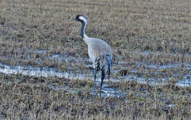 Jag hann bara åka en liten bit på min väg mot delmålet Uppsala när jag upptäckte en trana på en åker. Det var ingen annan på vägen så jag stannade och fotade genom bilrutan. Första tranan för min del i år men den räknas inte riktigt eftersom jag inte såg den hemma.
