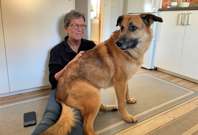 Så roligt att få träffa son, syster och Rocky. Den senare verkar vara en väldigt glad, tillgiven och härlig hund, precis som det ska vara. Vår Miss T är också lite av en knähund och sätter sig på samma vis, oftast då hos Husse.