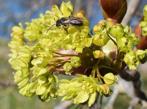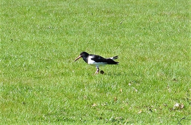 Får, grågäss med små gässlingar och en strandskata såg jag. Strandskatan var nog inte så gammal eftersom näbben inte fått den skarpa rödorangea färgen än. Lönnblomman har fått en liten gäst.