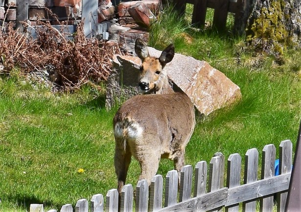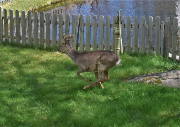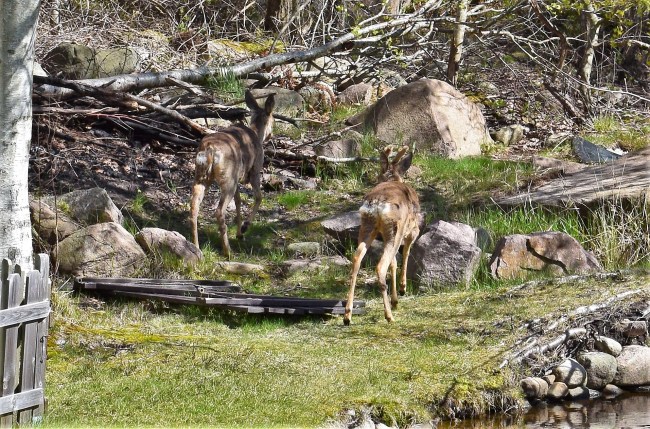 När jag reste mig upp för att titta hur det såg ut bakom skärmen skrämde jag tyvärr bort två rådjur. Men de hittar säkert tillbaka snart igen. Kanske inte så populärt hos mina värdar men de är i alla fall fina att titta på.