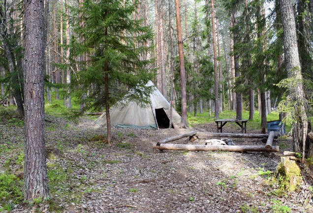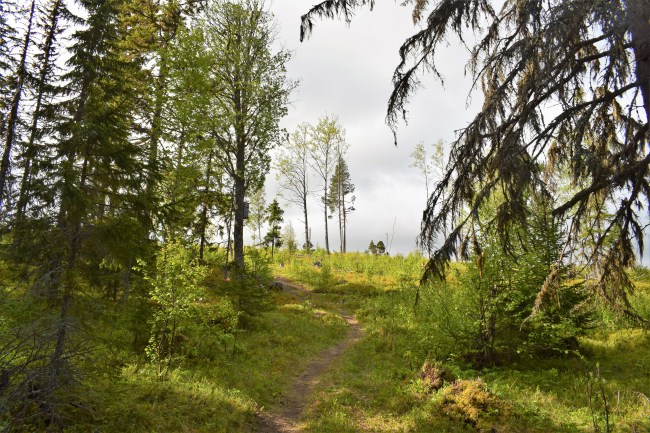 I morse for jag över bron till Annersia och parkerade vid Sandviken, där många har svängt sina lurviga till både kända och mindre kända dansband. Där finns även en liten camping och stugby. Jag visste inte att det fanns både elljusspår och många andra stigar i området ovanför men det fanns gott om alternativa stigar. Jag tog fram kartan i mobilen och började min stolpjakt. Det var mycket uppför men å andra sidan var det mycket nerför på slutet så i genomsnitt kan man nog säga att det var ganska plant. Jag kom ganska snart fram till en liten lägereldsplats. Tältet ser inte ut att vara till för övernattningar utan mer som en alternativ eldplats. Lite senare kom jag till ett vindskydd och som den gamla scout jag är var jag ju tvungen att gå fram och kolla att dubbelt halvslag och najning såg bra ut. Det var helt ok.