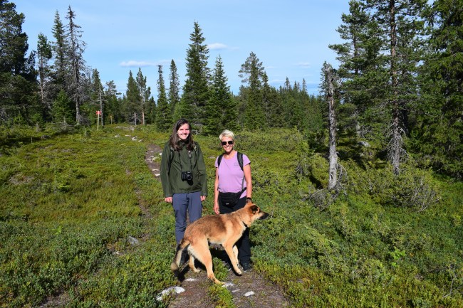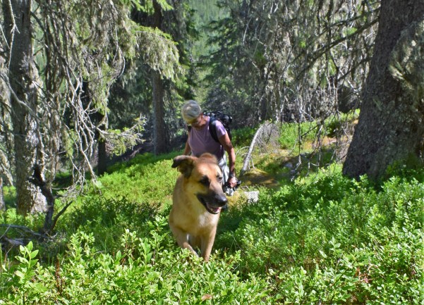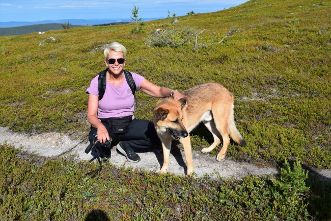 Ja, det blir en väldig skillnad i färger men det är fint även med det grå ibland. Den här lilla kullen går inte att jämföra med höga, dramatiska fjäll i Norge men miljöerna kanske ändå påminner om varandra. Det är ju till stor del vyerna man vill ha och själva vandringen kommer i andra hand, även om den också är trevlig. Visst njöt vi för fullt. Det är roligt att resa med likasinnade och vi ville verkligen samma saker varje dag. Då blir det ofta bra. Rocky är med på det mesta nu när han bor hos min syster. Hon önskar nog att hon hade haft honom som valp för att kunna miljöträna honom ordentligt men det funkar oftast väldigt bra ändå. Han är helt klart en viktig medlem i familjen 😀