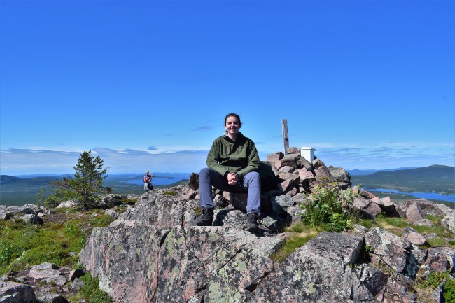 Men just här, var jag både vimmelkantig och hade svimningskänslor. Jag var tvungen att sätta mig ner en stund tills yrseln gick över. Jag sa inget så de andra trodde att jag bara behövde vila lite. Men sanningen var att jag var så otränad efter att, pga foten, ha varit i stort sett stillasittande i ett halvår. Benen darrade och jag har aldrig blivit så påverkad av en fjällvandring. Och det här var ett relativt litet fjäll. Men det gick över efter en stund och jag tog mig upp den sista biten. Min syster sa lite bestämt att jag måste säga till om det blir så men vad skulle det ha gjort för skillnad?