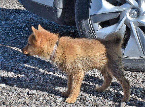 Hundrasen corgi är en favoritras för framförallt min systers dotter men även för min syster. När vi på parkeringen var helt ensamma förutom en liten familj med en corgi och en väldigt ny liten finnspets kunde min syster inte avhålla sig från att gå fram och hälsa på både vovvar och människor. Jag var inte sen att följa efter och även Rocky fick komma ut och hälsa på de små vovvarna. Ni vet ju vid det här laget hur mycket jag uppskattar att få träffa olika hundar och som ni ser fick jag hundpussar av båda.