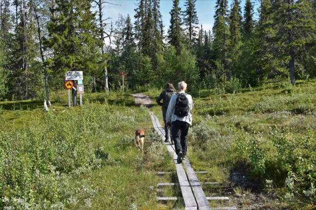 Här kunde vi ha gått hur långt som helst och med någon toppbestigning om vi hade haft ork och tid. Men det räckte så bra med en skön och lätt vandring efter den förra mer ansträngande turen. Dessutom ville vi inte komma fram till vår stuga i Jokkmokk väldigt sent.