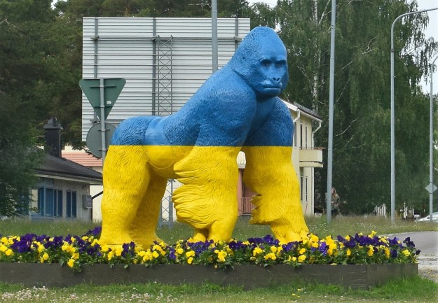 Jag måste erkänna att jag inte tänkte på Ukraina direkt när jag såg färgerna på gorillan. Det var Sveriges färger jag såg men gorillan blev aningen finare när jag förstod sammanhanget.