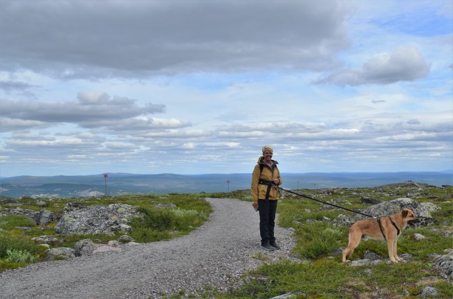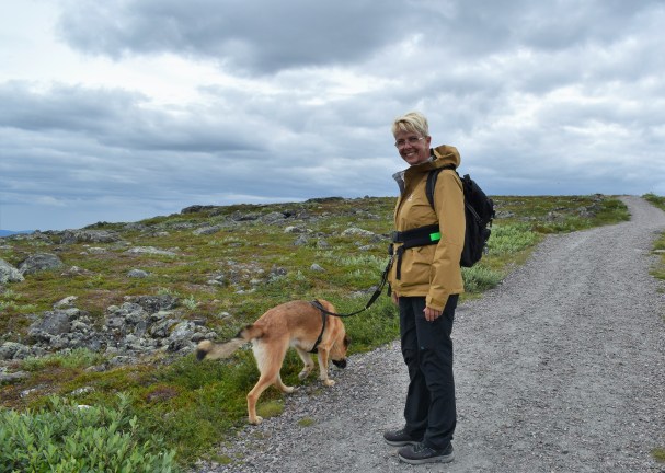Jag hade tittat på Dundret i förväg och sett att en bilväg kunde ta oss nästan ända till toppen. Det kändes skönt att den här dagen slippa anstränga kroppen med en ny bergsbestigning och det blev ett bra val. Vädret hade återgått till det gråväder vi hade första dagen men det regnade inte så vi fick en skön promenad.