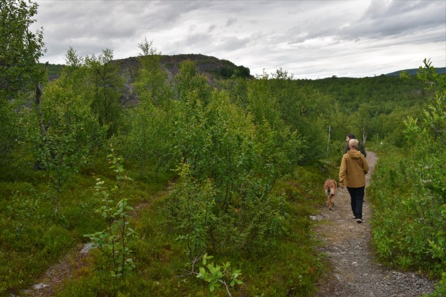 Vi lämnade den fina grusgången och vände tillbaka på en lite mer fjällliknande led. I dalen skymtar Gällivare.