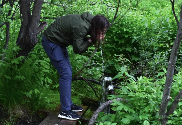 Vid en kallkälla testade William vattenkvalitén och den var fin.