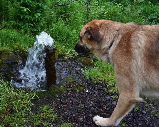 Det fanns en annan liknande källa lite längre fram och där såg set ut som om Rocky skulle följa sin idols betéende men han vågade sig inte riktigt fram.