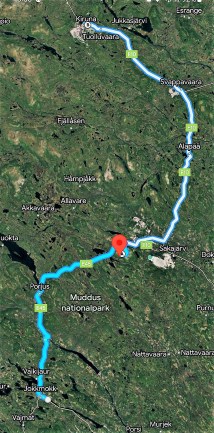 Dagens etapp gick mellan Jokkmokk och Kiruna och förutom stopp för laddning av min systers Tesla blev det inte mer än en lite längre utflykt. Det känns bra att ha varit uppe på Dundret som är det enda jag egentligen känner till om Gällivare. Jag fick upp sången ”I Gällivare trakter” i hjärnan av någon anledning men eftersom den inte tillhör min sorts musik så vet jag inte varför. Dundret finns vid den röda markeringen och alldeles bredvid ligger Gällivare, som märkligt nog inte står utsatt på kartan.