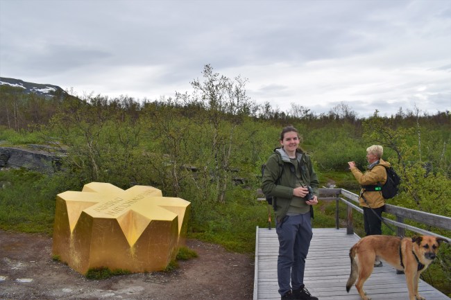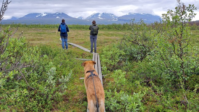 Bevis på att vi var i Abisko nationalpark. Fjället i bakgrunden heter Nuolja och där tog jag och min son liften upp för två år sedan och fick en vidunderlig utsikt över Lapporten, Torneträsk och alla omgivande fjäll. Den här gången var det inte lika frestande eftersom sikten inte var lika fantastisk och dessuton kan Rocky inte åka i en öppen sittlift. Men vi blev väldigt nöjda med dagen i alla fall.
