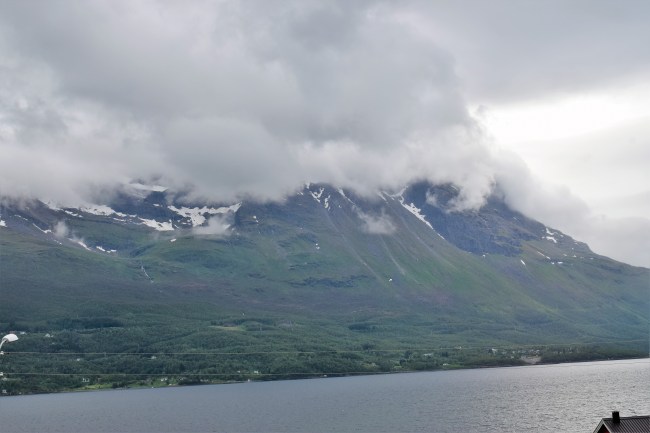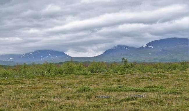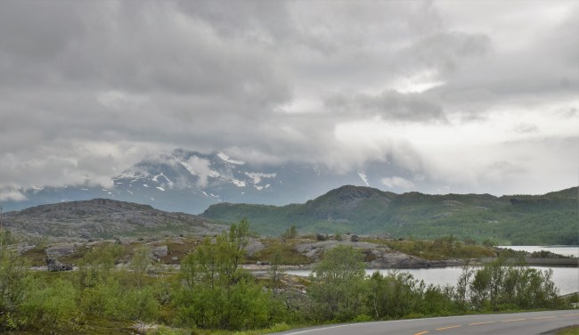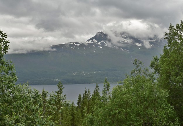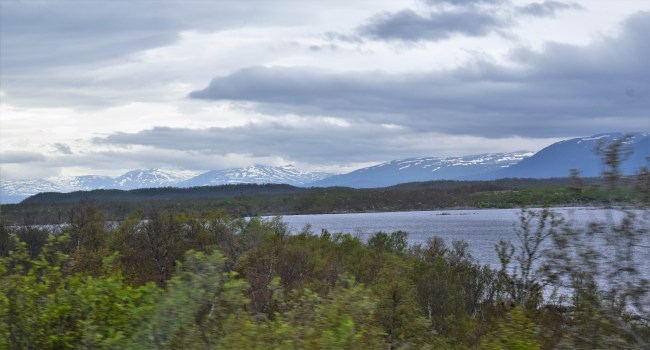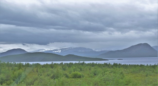 Efter frukosten i Kiruna gjorde vi oss i ordning för vidare färd mot dagens mål, Hergot i Narviks kommun i Norge. När vi närmade oss fjällen började knäppandet från min och Williams kameror medan Gunnel körde. Vädret gav oss inte de bästa förutsättningarna men man kan ändå få en aning om hur fjällen och Torneträsk samverkade för att ge oss fina vyer.