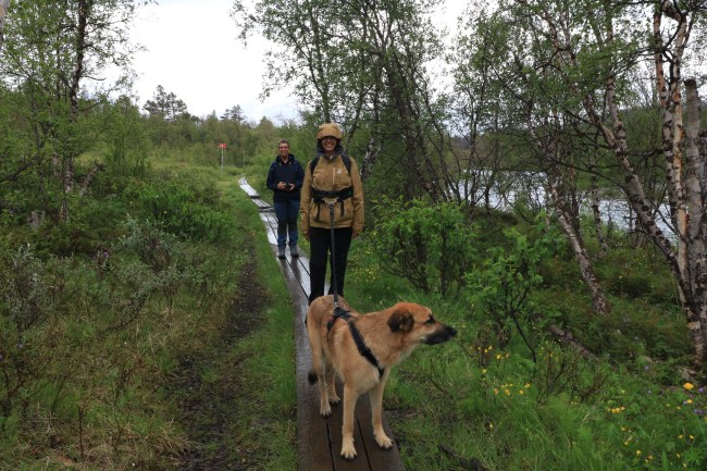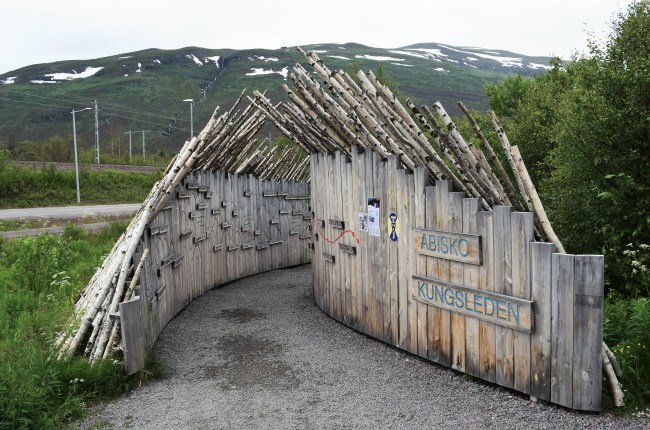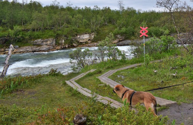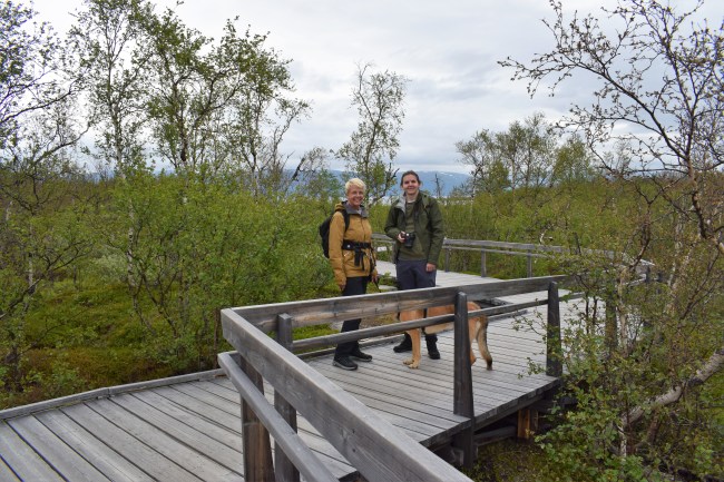 I Abisko stannade vi vid turiststationen för att därifrån först följa en led ner mot sjön. Leden började med en passage genom starten på Kungsleden.