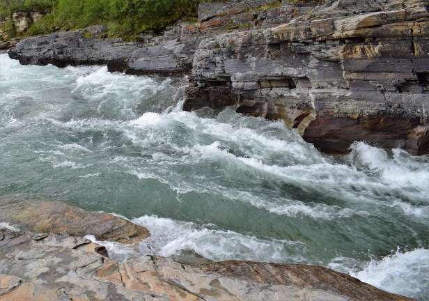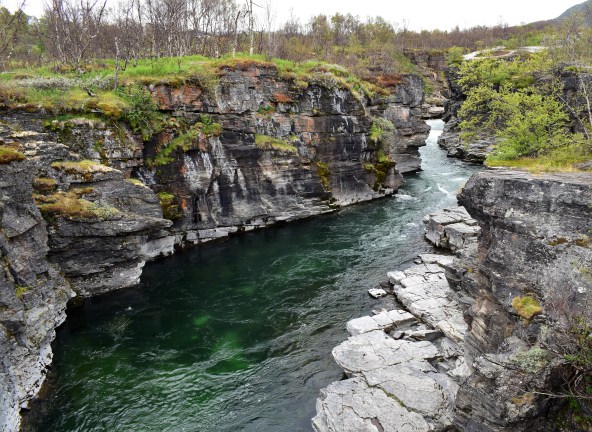 • Ja, det syns inte hur turkos vattnet i kanjonen var och ännu mer färg syns när solen skiner. Jag hade en liten tanke om att bada i Torneträsk eftersom tre generationer (manliga sådana) i familjen har badat där och gjort en grej av det. Men fy, vad kallt det var och det hade inte varit mycket bättre med solsken. Jag hoppas att du får tillbaka din sköna badtemperatur. Jag ligger ju lite efter i läsandet och för mig har du nyss badat 😀