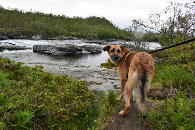 Rocky tittar ut över älven där den snart rinner in i kanjonen.