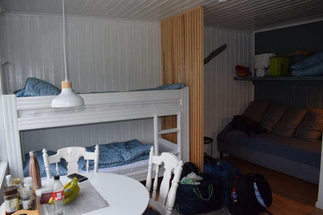Vi bodde trångt men med ett stort fint badrum och det var inga problem med att sova så nära varandra.