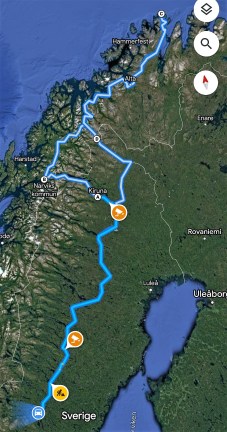 Jag avslutar med en del fakta. Jag har redan berättat att hemifrån mig åkte vi 375 mil och min del, en tredjedel, av laddningskostnaden för bilen blev totalt 881 kr (månadskostnaden för en leasingbil är exakt samma oavsett körsträcka, inom vissa gränser, och därför betalade jag bara för driftskostnaden). För boende 13 nätter blev min kostnad 5799 kr. Alltså i genomsnitt 446 kr per natt. Gunnel fick betala 320 kr extra totalt för att Rocky var med oss. Vårt mål var att inte komma upp i mer än ca 500 kr per natt och person så det lyckades vi bra med. En enda entréavgift har vi betalat och den gick på 145 NOK, vilket motsvarar ca 150 SEK. Kostnaden för båtresan till Treriksröset gick på 680 kr med växlingspåslag. Allt annat, dvs mat och några andra småsaker, räknar jag inte in i resans kostnad.