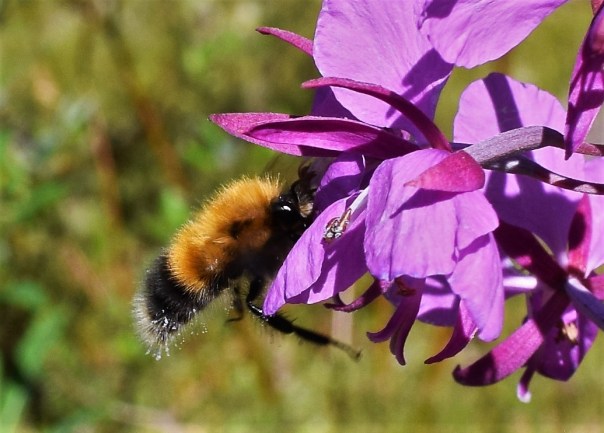 Jag hann med ett möte med en humla i en mjölkört medan jag väntade. Vädret var skönt så jag satte mig på en bänk tills mitt sällskap kom tillbaka. Sedan for vi raka vägen hem till mig, med stopp för laddning av bil, inköp av sallad till middagen och någon kort bensträckare.
