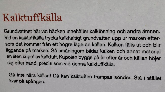 Efter en stund kom vi fram till en kalktuffkälla. Ni minns säkert inte det men tidigare i somras gjorde jag en utflykt till Fillstaån och där fanns det också en kalktuffkälla. Kanske en vanlig naturtyp i Jämtland.