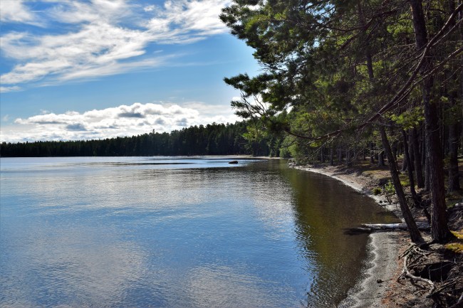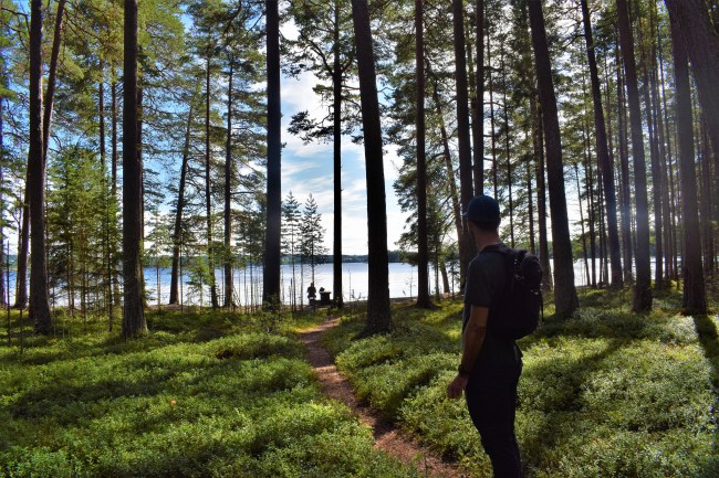 Jag tittade tillbaka mot sjön när vi hade kommit fram till skogen.