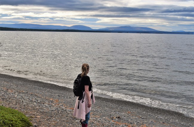 Efter lunchen, rester från gårdagens lasagne, bestämde vi oss för att kolla tillgången på lingon på Bynäset. Jag hade redan plockat tillräckligt men där min svägerska bor har det inte varit kul att gå ut pga alla översvämningsmyggor. Här såg vi inte till en enda mygga. På den här sidan av Bynäset är det ofta väldigt lugnt även om det kan blåsa rejält på andra sidan.