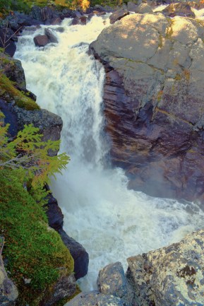 Det går att komma till forsen på en annan mer lättgången stig och då kommer man till andra sidan och får se fallet nerifrån. Där har jag gått förr och kanske gör jag det igen någon gång. Men inte i år. Ska jag till något mer fjällområde så blir det nog någon annanstans.