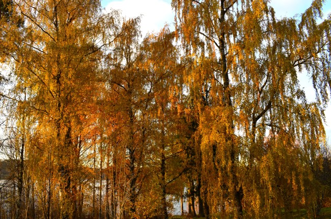 De flesta träd är helt kala nu men några har fortfarande sin höstklädsel kvar. Jag tänkte att jag ville passa på att ta ett höstfoto till för i morgon kan det vara för sent.
