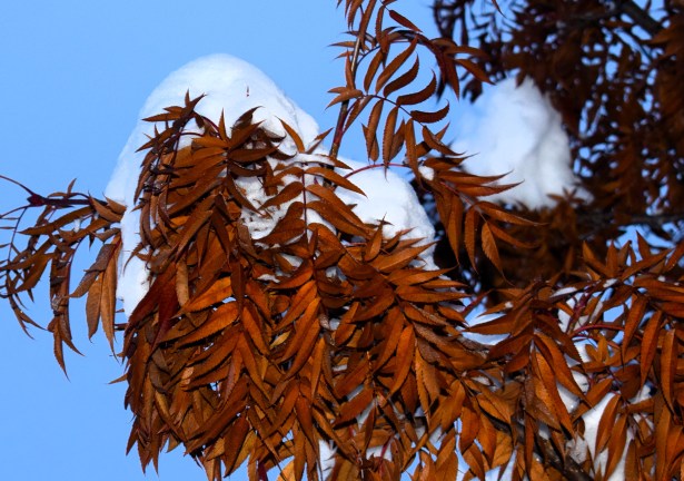 3. Oi jammen har dere fått mye snø. Det blir veldig flotte bilder når man får snø på blader og sola skinner. Her regner det igjen, men jeg håper snøen klarer å bli liggende.