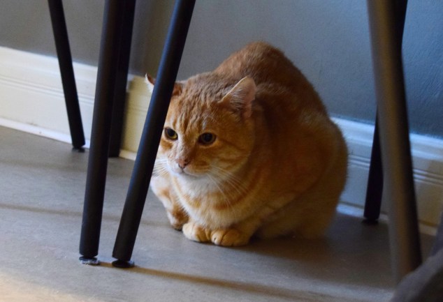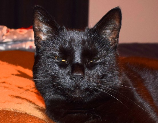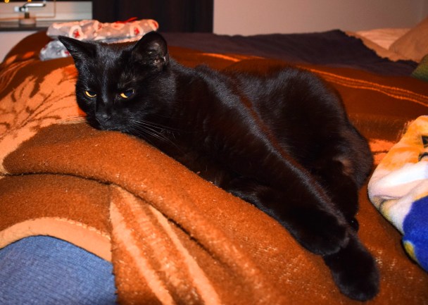 Efter en skön promenad, fika och som alltid en trevlig pratstund for jag vidare mot Örebro och först min äldsta dotter. Min son är gärna med i foton men hos mina döttrar får jag oftast nöja mig med att fota omgivningar eller katter. Min äldsta dotter har varit jourhem åt en liten Samoa ganska länge nu. Det dröjde flera månader innan han vågade närma sig sin tillfälliga matte. Han gömde sig helst långt in under sängen och fräste om hon kom för nära. Men långsamt har han tinat upp. Min dotter har verkligen gjort så gott hon har kunnat och bl a har hon ofta suttit på golvet och läst högt för Samoa bara för att han ska vänja sig vid rösten. Nu älskar han min dotter och verkar lita helt på henne. Hon får hantera honom och han kommer ofta och vill gosa och vill vara nära. Vilken lycka! Nu är han utannonserad som tillgänglig för köp men en del av mig hoppas att det ska bli svårt att hitta någon som har tålamod att få Samoas förtroende. Han är dessutom inte purung och han behöver dyr medicin livet ut. Min dotter vill inte ha ägaransvaret men vill gärna ha kvar honom. De har båda utvecklat starka känslor för varandra. Men kanske kan han få ett jättebra hem med nya människor att älska och lita på. Mig ville han definitivt inte träffa. Han fräste inte men han höll sig så långt bort från mig han kunde.