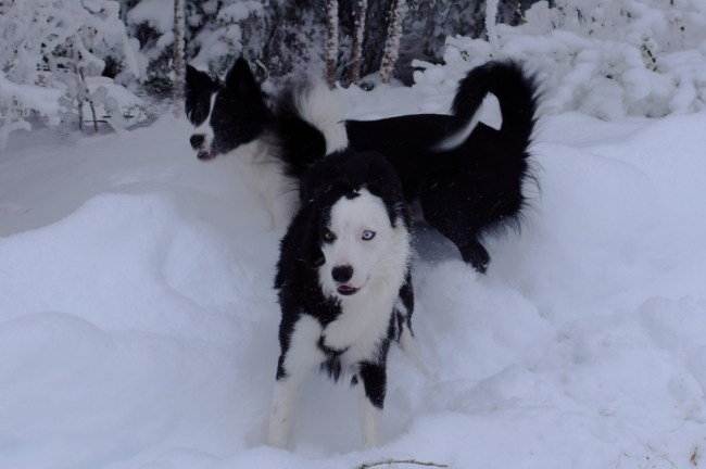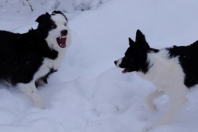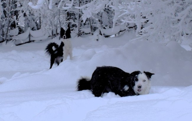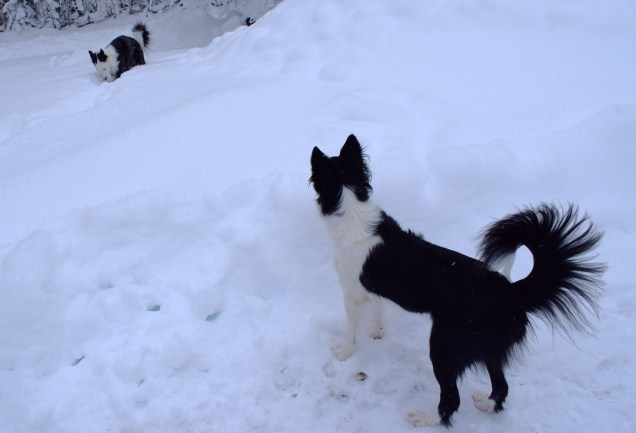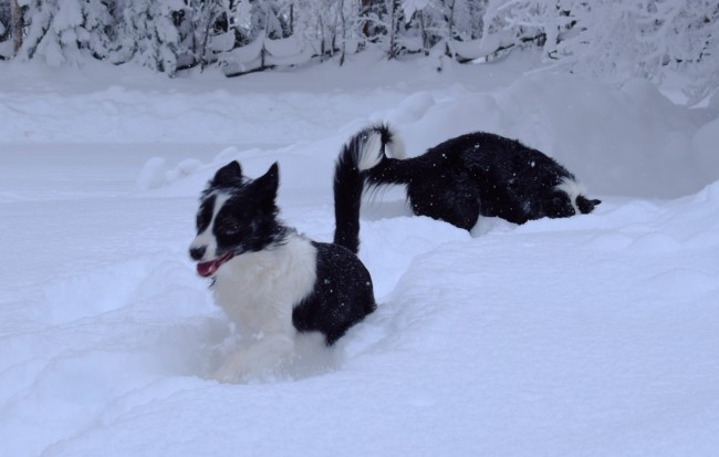 Här kommer en liten bildkavalkad på deras lek i snön. Charlie är den med ett vitt ansikte. Kerstin är också en bordercollie men hon är några år äldre.