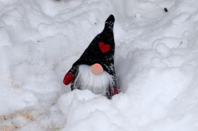Just när jag skulle gå fick jag syn på en liten tomte i snön under granen. Jag trodde att han var placerad där men enligt tjejen och killen i skyliften hade han ramlat ner. Jag tycker att han hade hamnat på en bra plats där han passade fint.