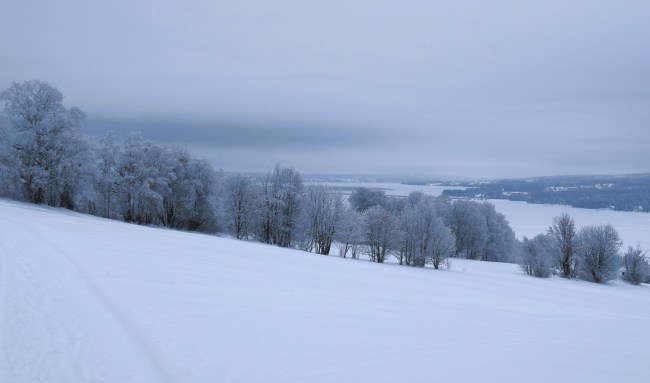 Rimfrosten har återigen invaderat de träd som står i öppna landskap. Underbart! Lite sol skulle inte vara så dumt men man får vara tacksam för det lilla.